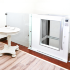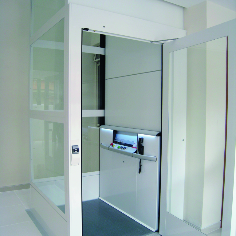 LP15N platformslift kan leveres med forskelligt tilbehør, blandt andet glaspaneler, automatiske døråbnere, trådløs betjening, eksteriør i flere farver.