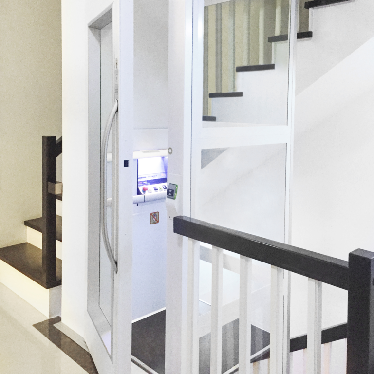 Nødstop og alarmfunktion samt sikkerhedslister på alle platformens kanter, gør platformsliften til en tryg måde at bevæge sig mellem etagerne i sin bolig, når trapperne er for stor en udfordring.
