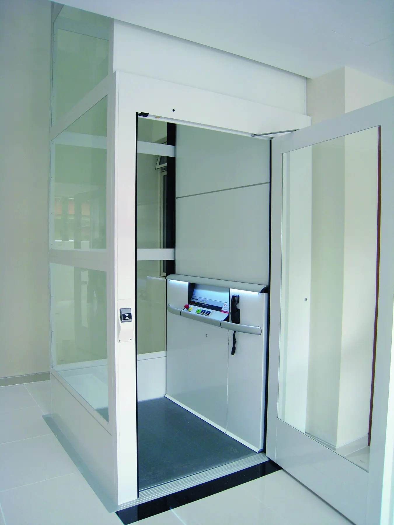 LP15N platformslift kan leveres med forskelligt tilbehør, blandt andet glaspaneler, automatiske døråbnere, trådløs betjening, eksteriør i flere farver.