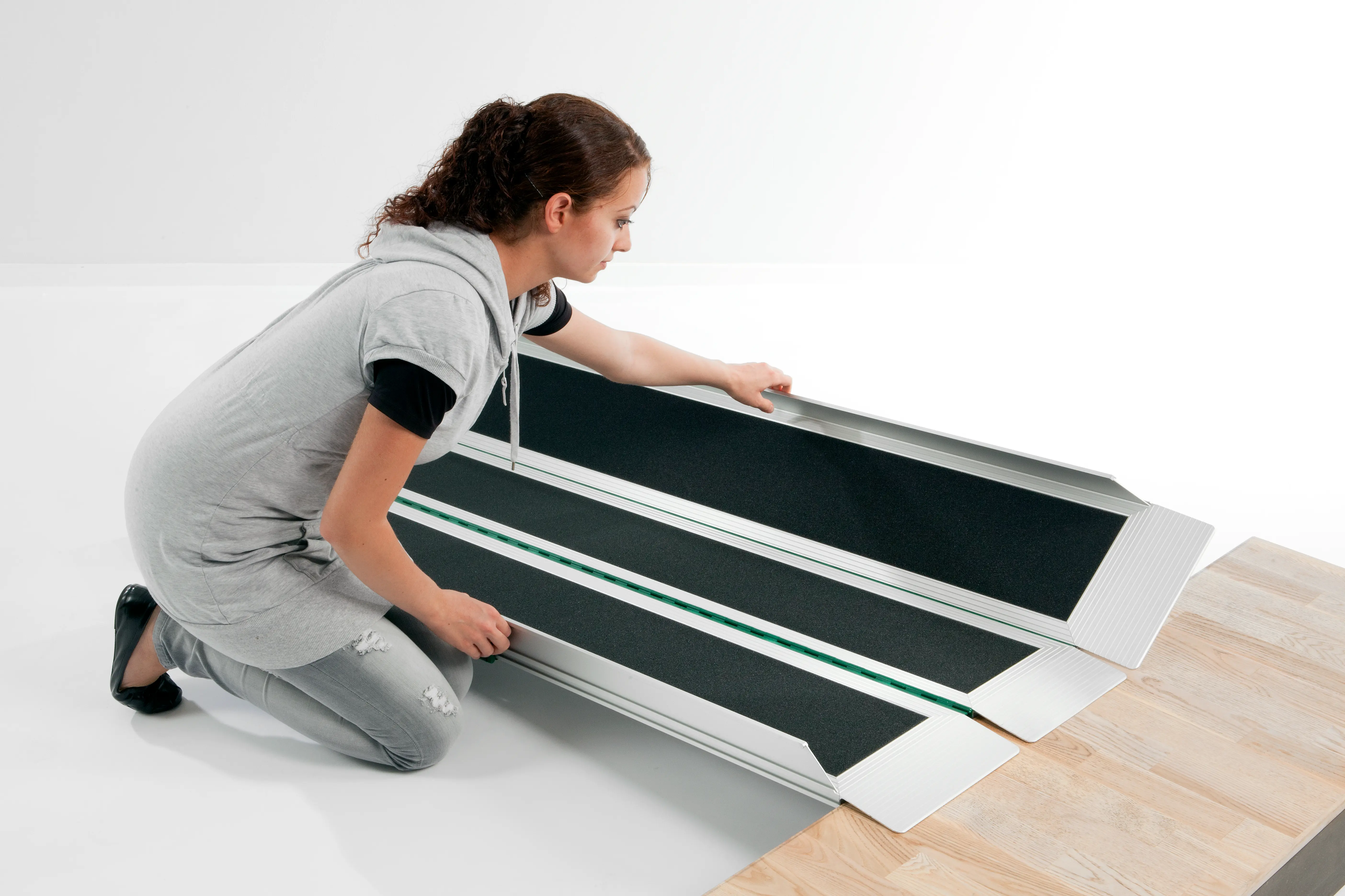 EasyFold Pro3 rampe fås i længden 165 cm, der egner sig til niveauforskel op til 33 cm.
