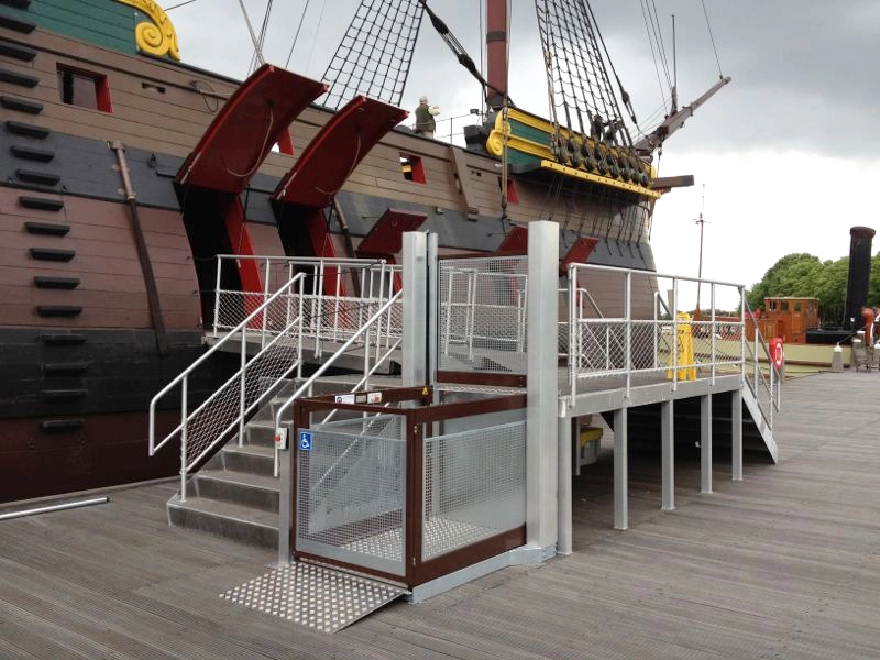 Die Stepless LP8 Hebeplattform ist für Orte ideal, wo die Benutzer Höhenunterschiede von bis zu drei Metern überwinden müssen.