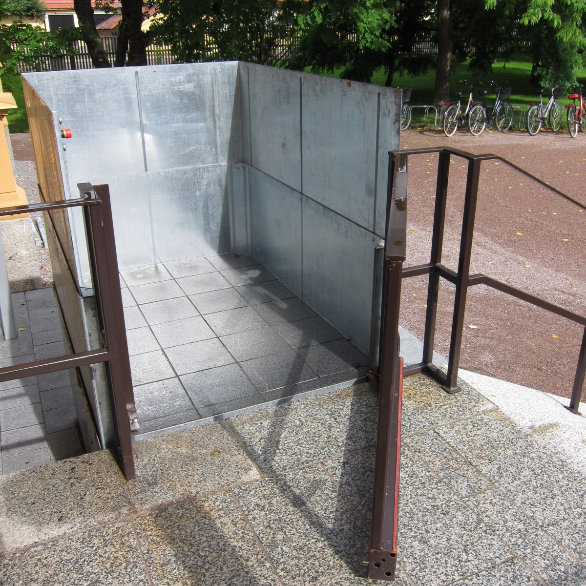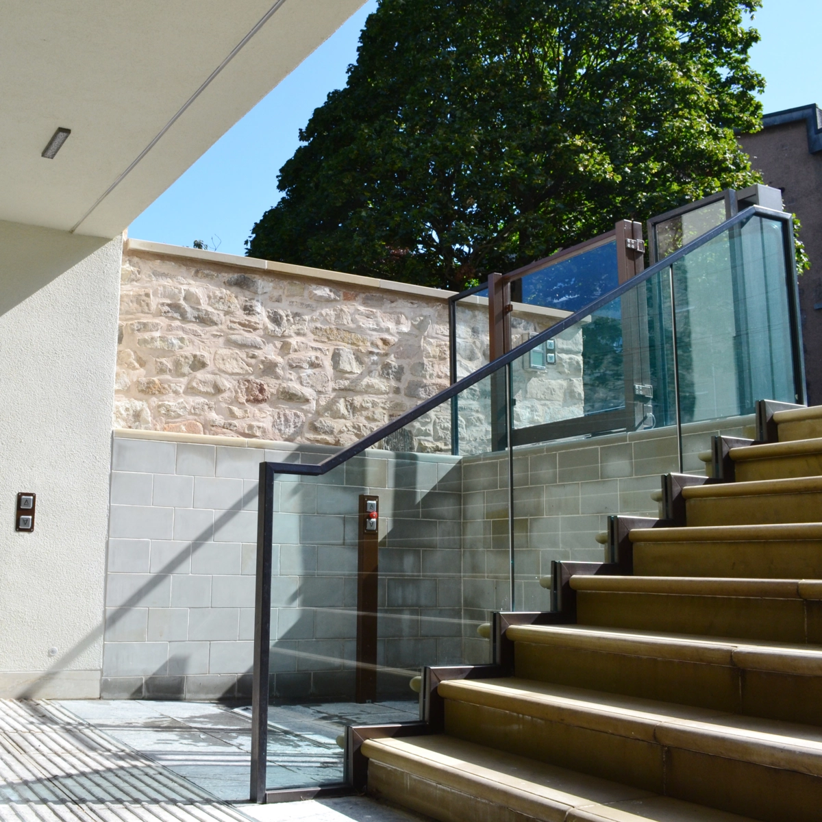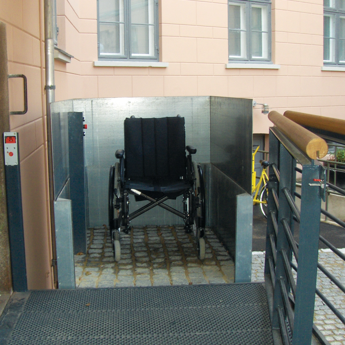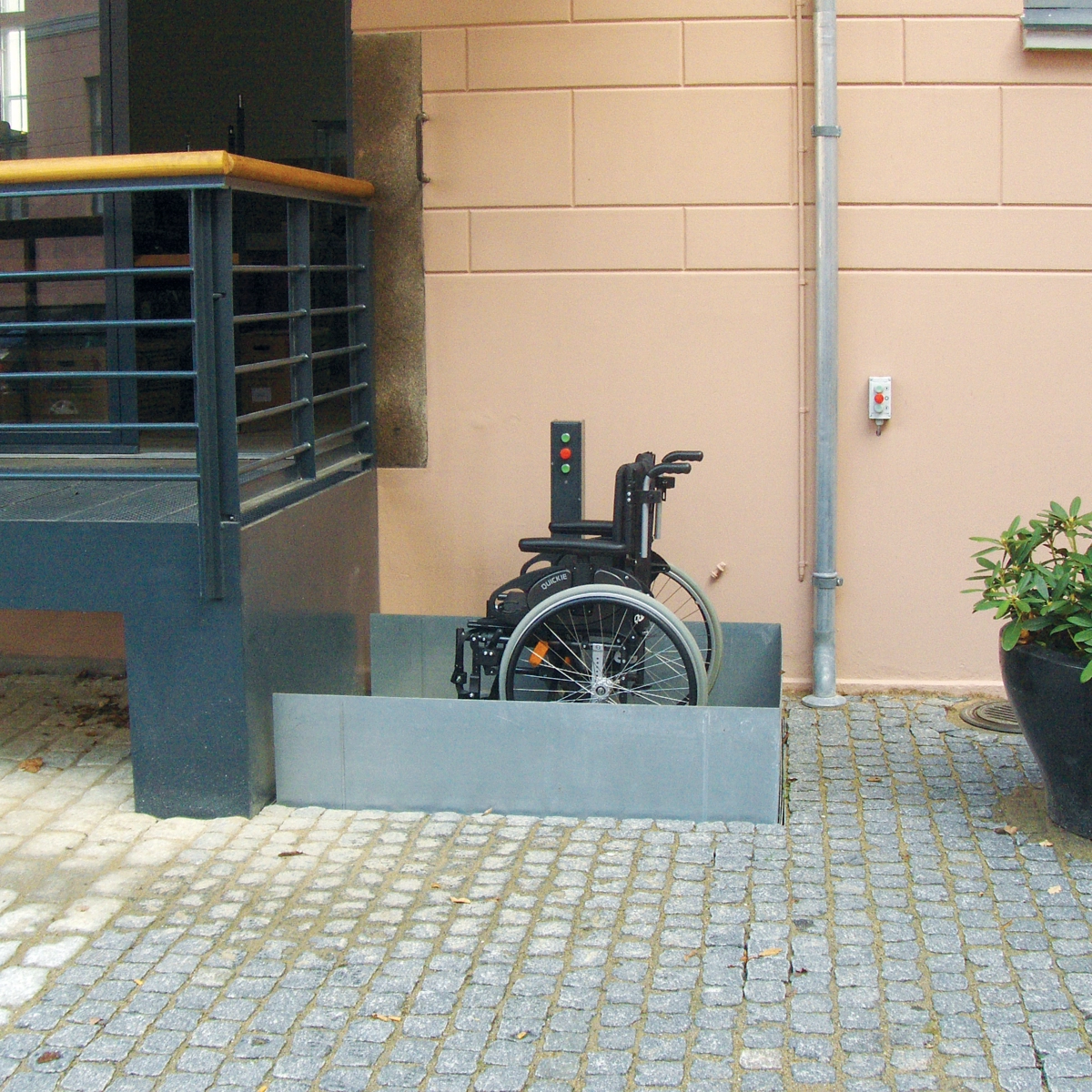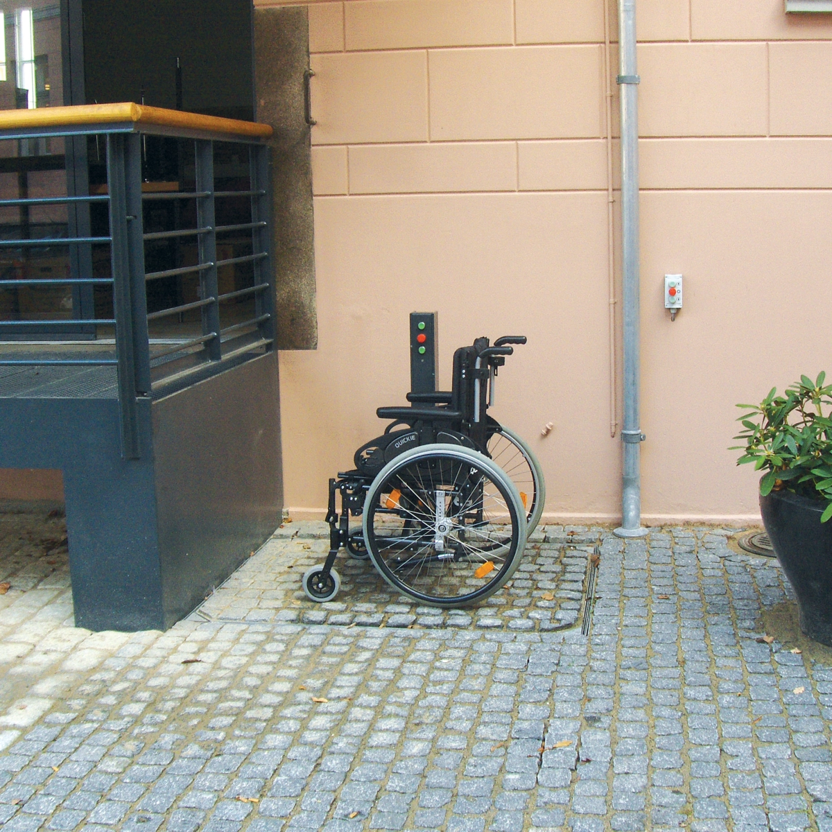 Die für den Außenbereich entworfene Stepless SLP Hebeplattform wird gewöhnlich außerhalb von alten öffentlichen und/oder denkmalgeschützten Gebäuden installiert, die aus einer Zeit stammen, in der es noch nicht üblich war, Benutzer mit eingeschränkter Mobilität zu berücksichtigen.