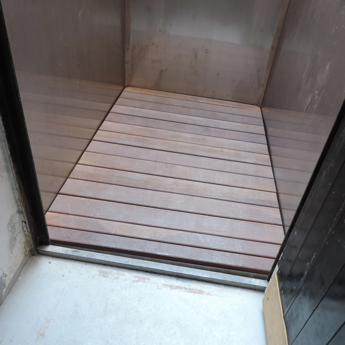 Die Stepless SLP B Hebeplattform ist ein maßgefertigtes Modell, bei dem sowohl die Plattform als auch die hohe Abrollsicherung in einen vorgefertigten Schacht im Boden eingebaut werden.