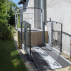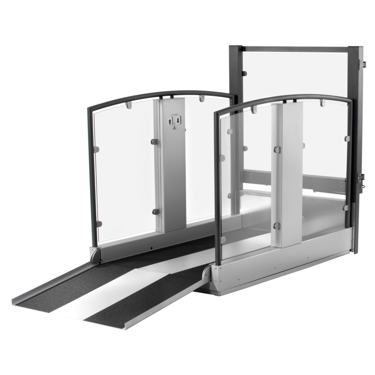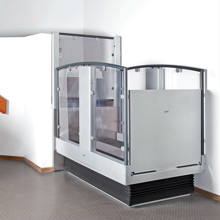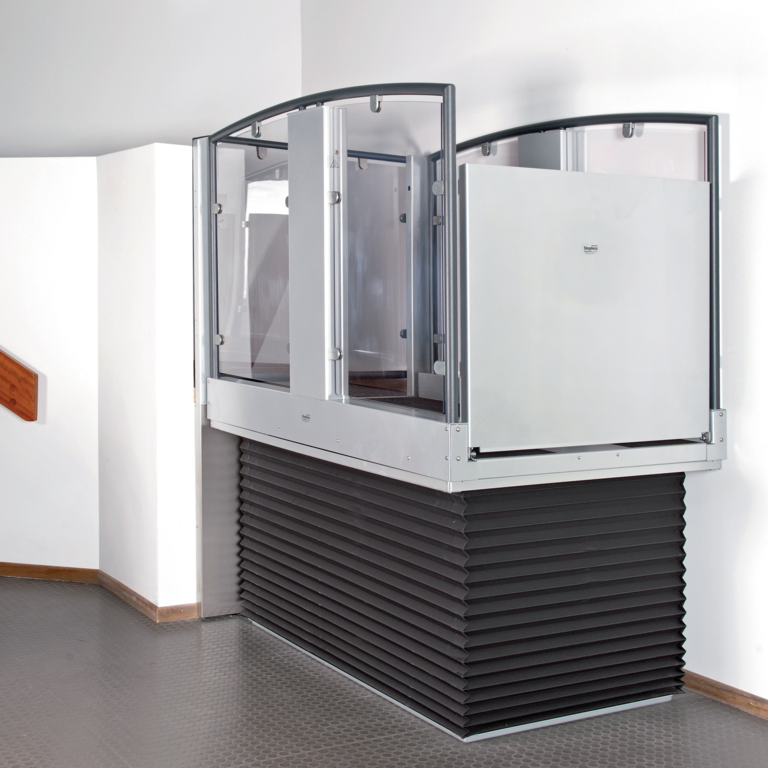 The Stepless LP5+ platform lift is available with features including a safety gate for the upper level, exit to the left or to the right, and wireless operation.