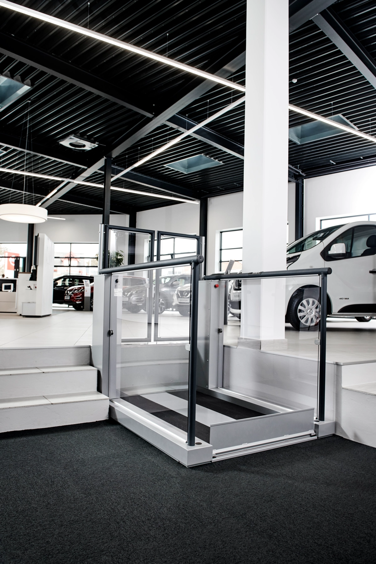 The Stepless LP7 platform lift has a unique, self-supporting construction. LP7 has a very low entry level of only 50 mm, which allows for a short ramp and no need for placing the platform in a pit. The LP7 platform lift can achieve a lifting height of up to 1500 mm and has a lifting capacity of 350 kg.