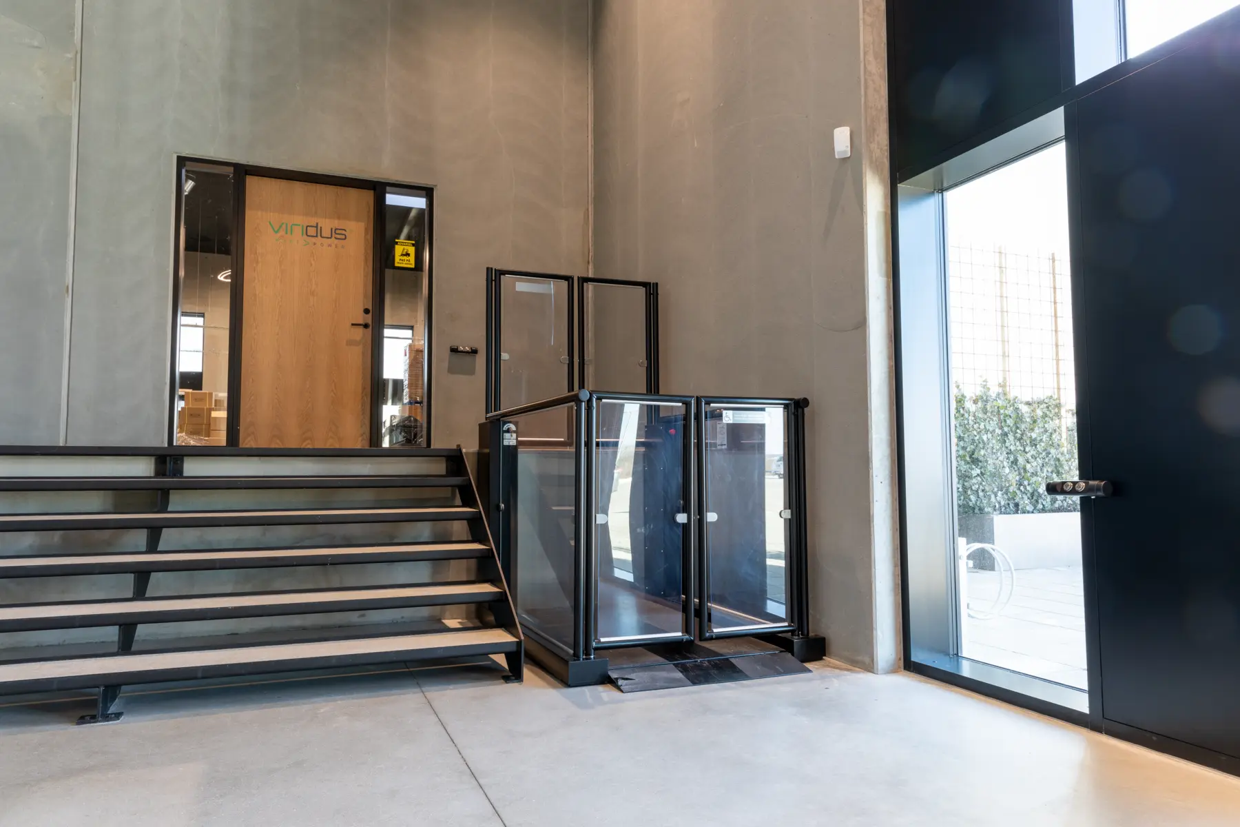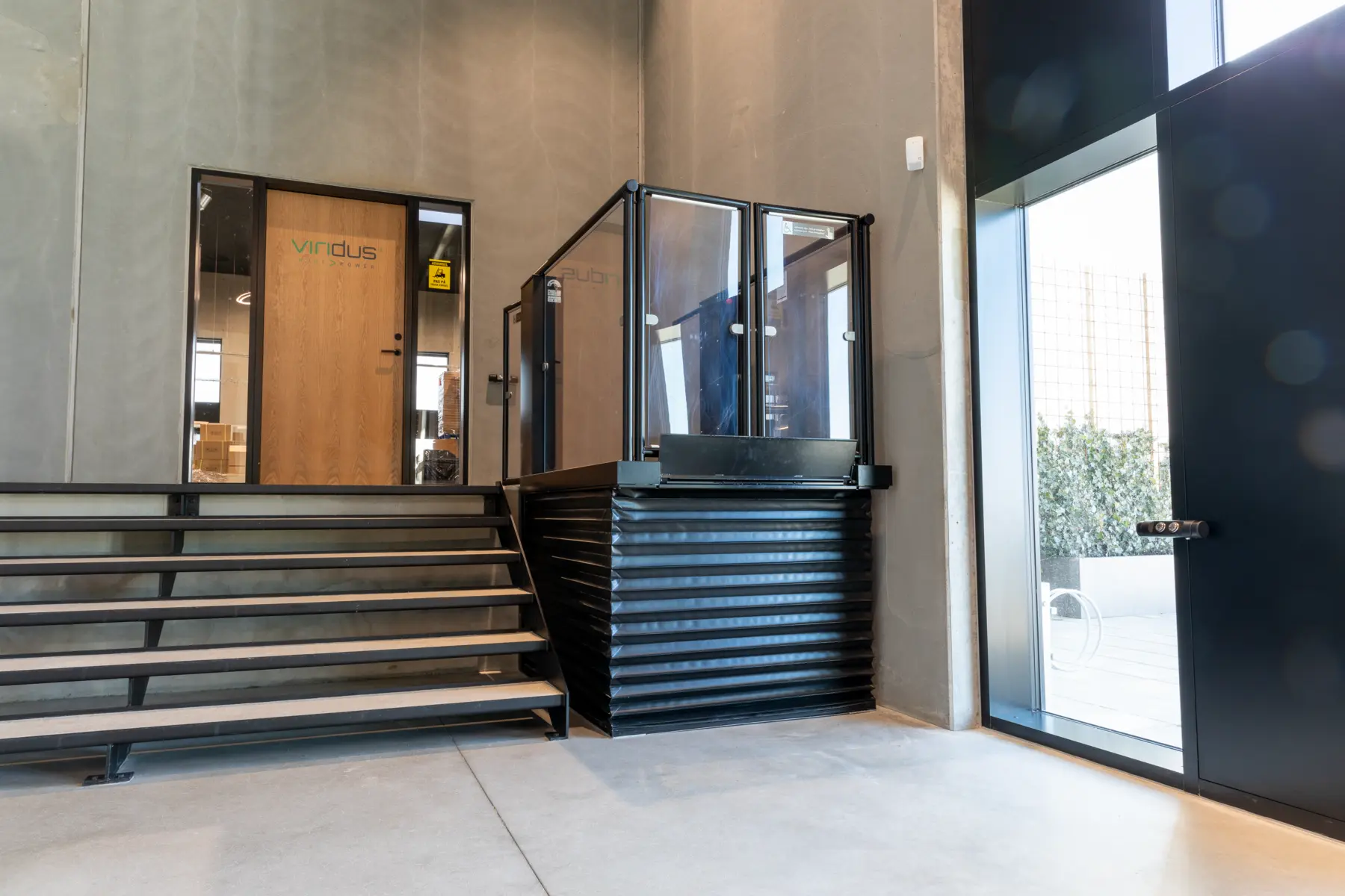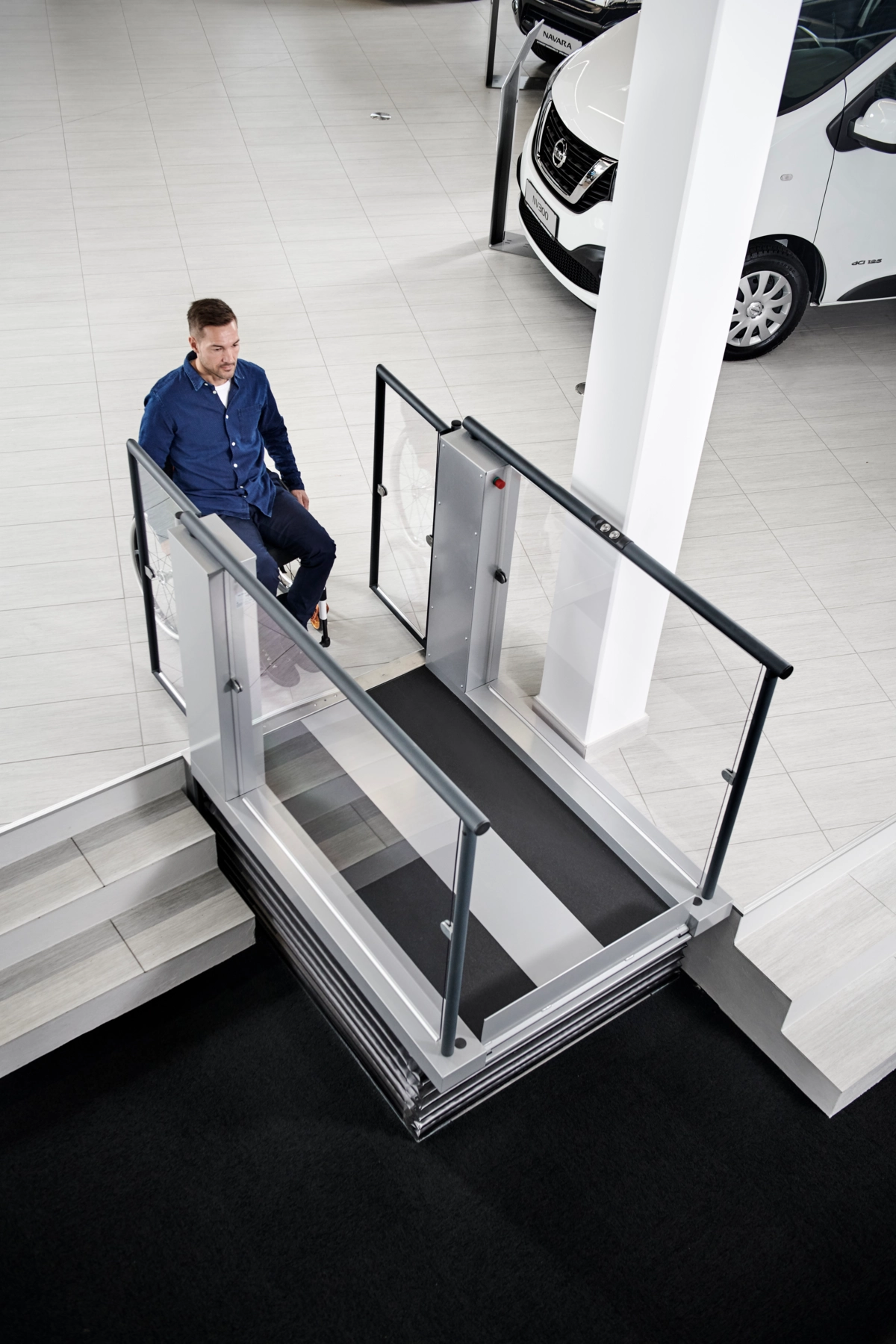 The platform lift has an elegant and light design that is simple to integrate in various environments. LP7 is for indoor as well as outdoor use, and is easy to install, as it is placed directly on the ground and is self-supporting.