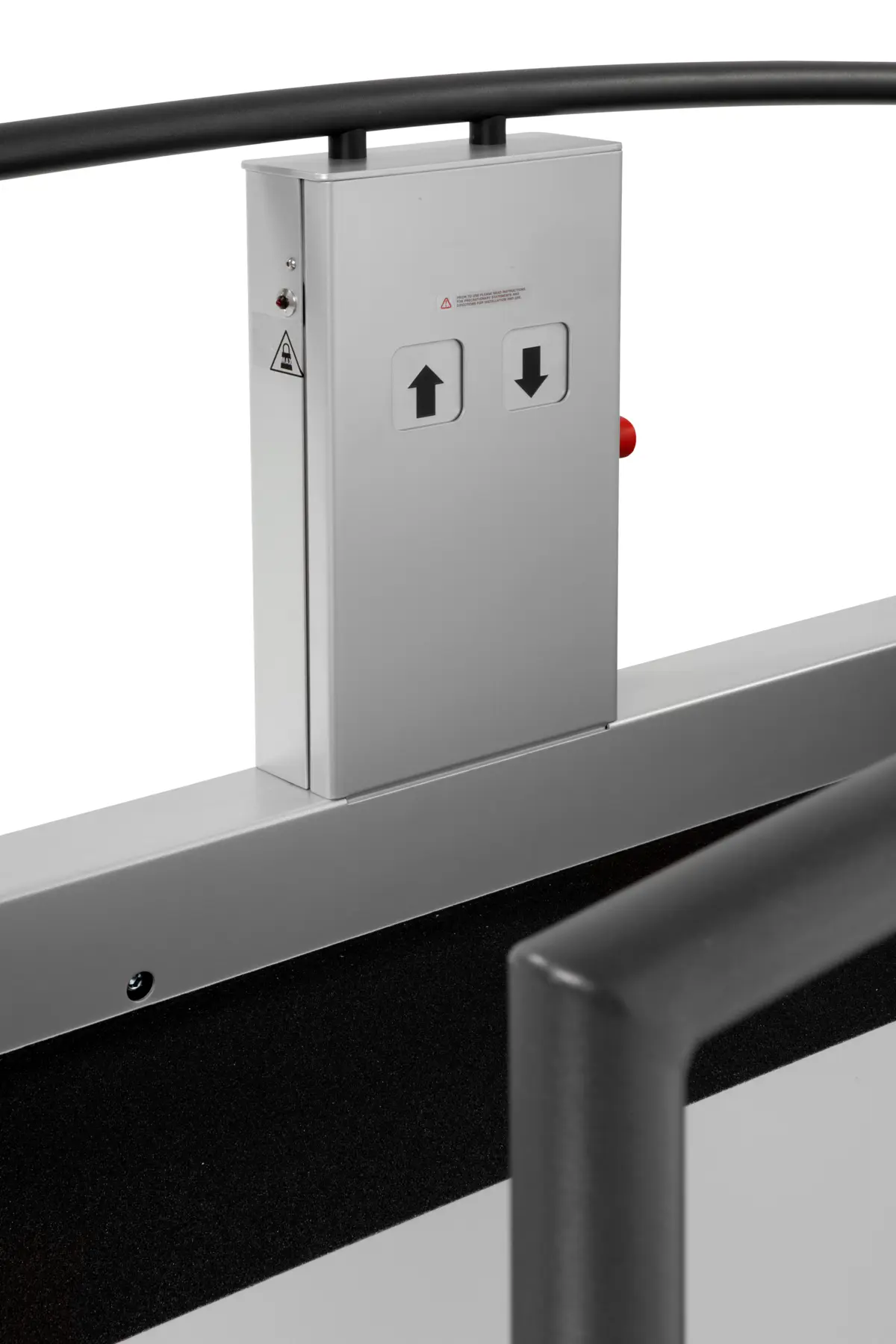 Cette plateforme élévatrice possède un panneau de commande intégré.