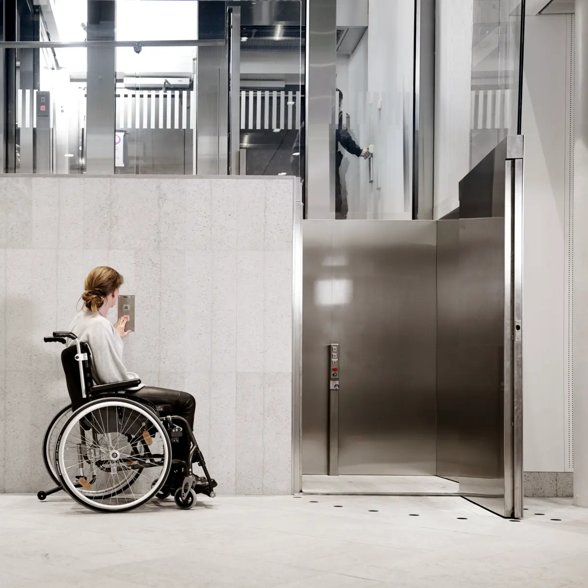 Même si le modèle SLP G est principalement destiné à être actionné par la personne à mobilité réduite, il est aussi disponible avec un panneau de commande externe.