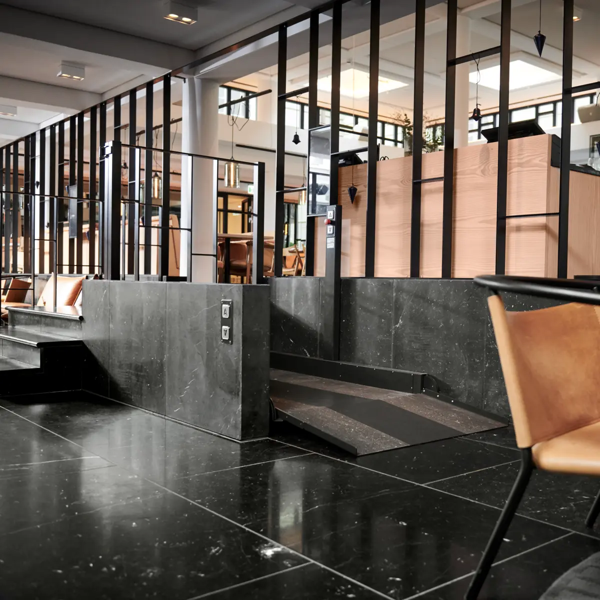 La plateforme SLP G de Stepless peut être installée à l'intérieur comme à l'extérieur.