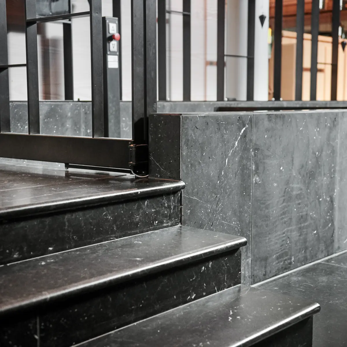 La plateforme élévatrice SLP G de Stepless est une plateforme sur mesure conçue pour être installée dans une cage fermée ou partiellement fermée avec des côtés fixes autour de la plateforme.