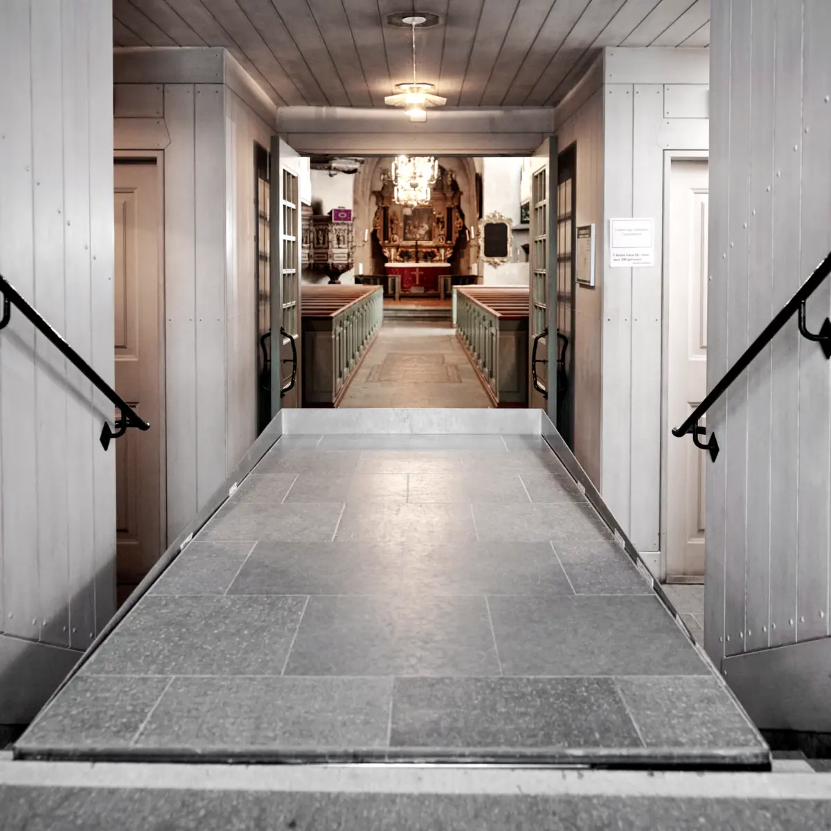 La plateforme élévatrice se fond dans l’environnement dans lequel elle est installée et est donc idéale pour les bâtiments patrimoniaux et les sites où le style esthétique de construction existant doit être respecté.