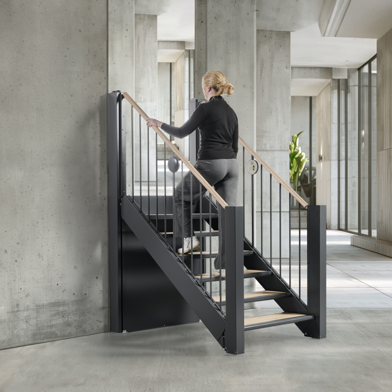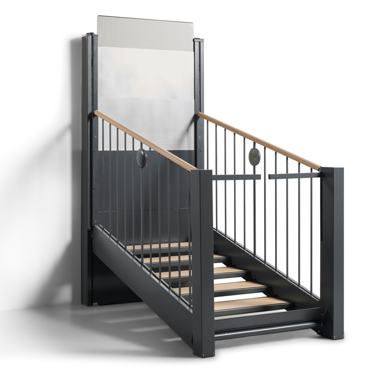 StepOne de Stepless se transforme facilement d'un escalier en plateforme élévatrice, offrant une accessibilité sans nécessiter de modifications structurelles. Conçu pour les espaces neufs comme existants, StepOne allie fonctionnalité et flexibilité architecturale.