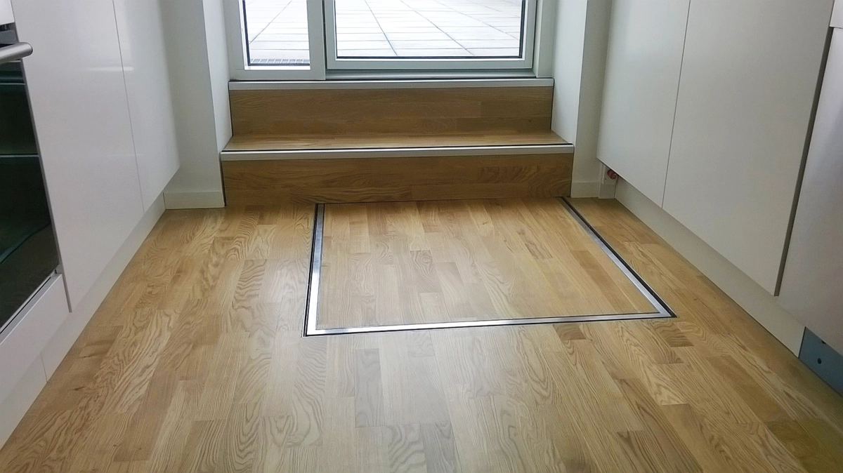 Si tratta di un prodotto personalizzato, ideato per l'uso in interni. Rifinito con la stessa superficie del pavimento, è una soluzione assolutamente discreta.