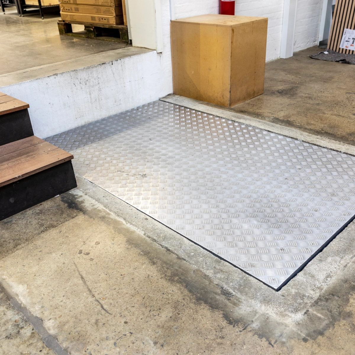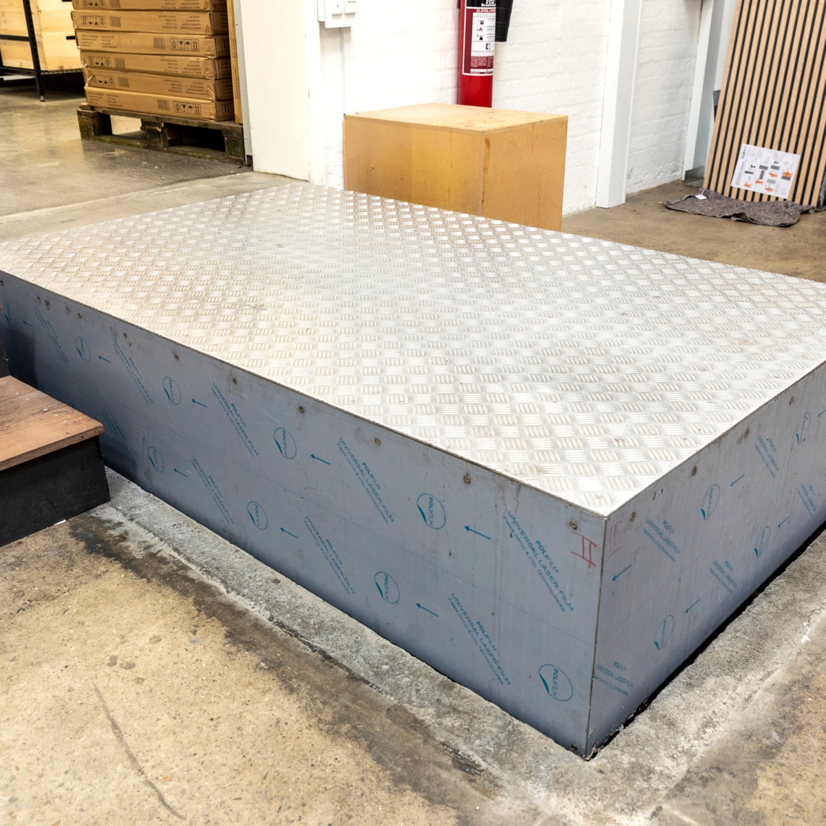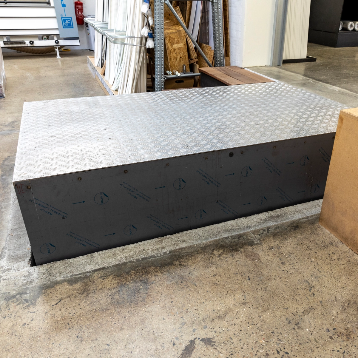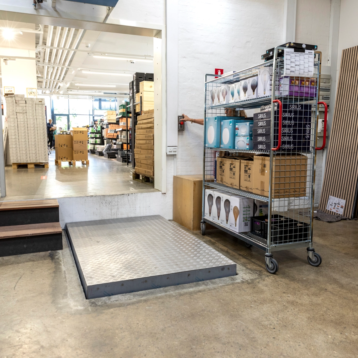 La piattaforma di sollevamento è incassata nel pavimento del piano inferiore e può essere sollevata su un pianerottolo o su un altro dislivello, oppure può essere posizionata come piattaforma indipendente.