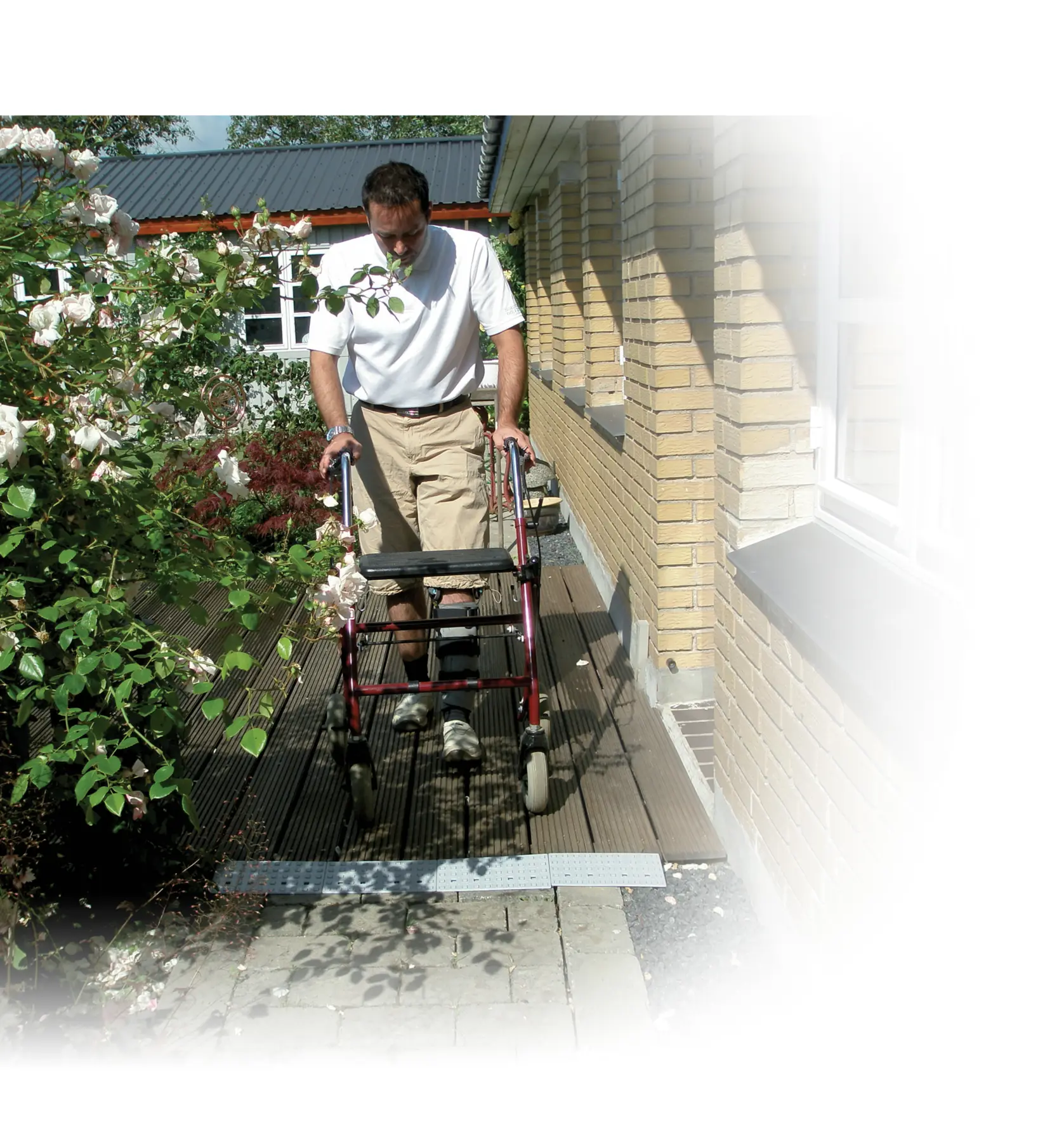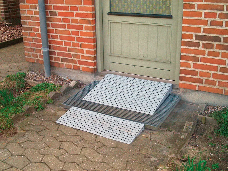 Stepless Excellent- drempelkits maken het overbruggen van drempels gemakkelijk, zowel binnen als buiten. Het plaatsen van de drempelkit aan weerszijden van de drempel biedt een nog soepelere oplossing voor hoogteverschillen.
