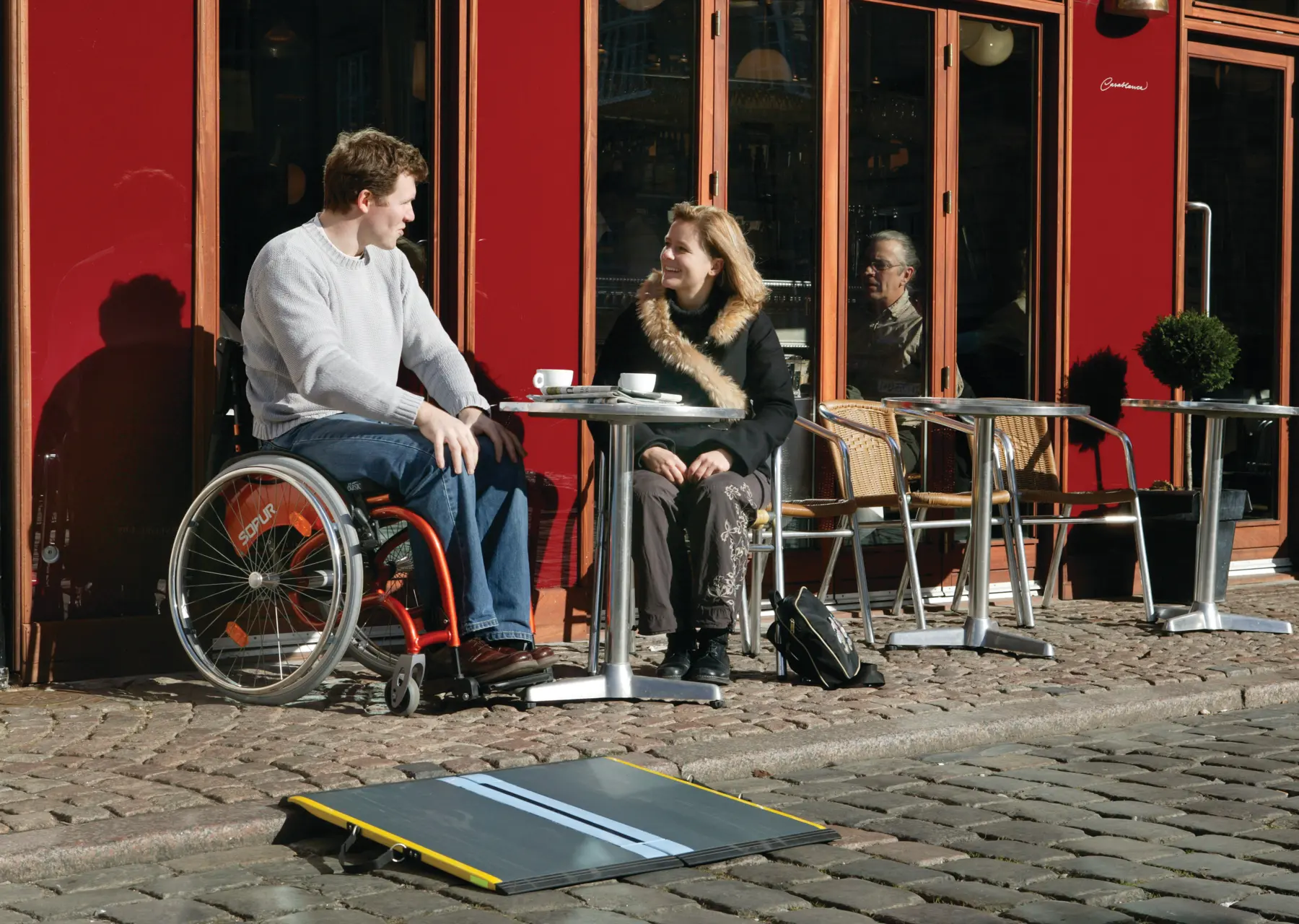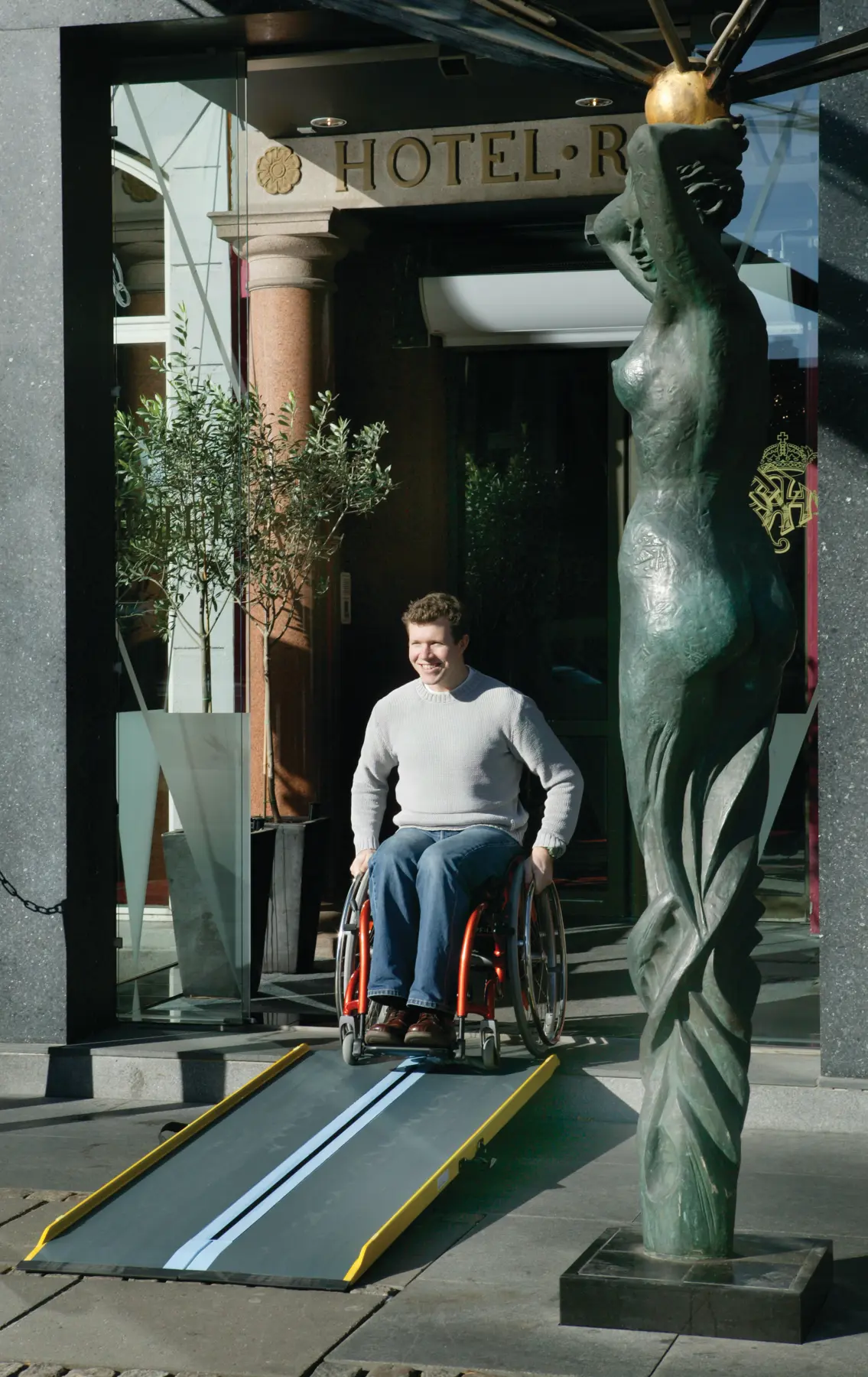 Stepless Lite- oprijplaten zijn gemaakt van glasvezel en koolstofvezel en behoren tot de lichtste modellen op de markt, dus ze zijn ideaal voor actieve gebruikers die zelf hellingen moeten hanteren, en die nu hun eigen oprijplaat kunnen meenemen.
