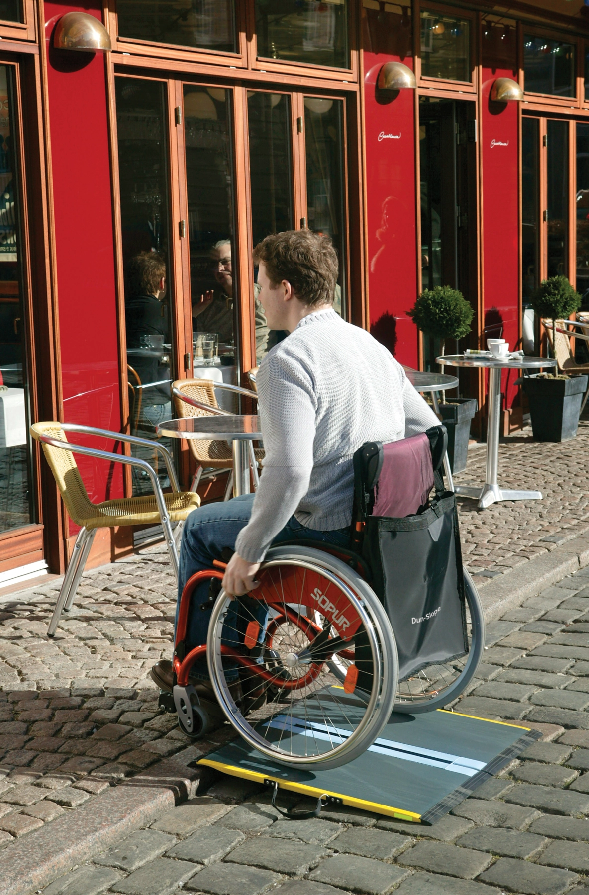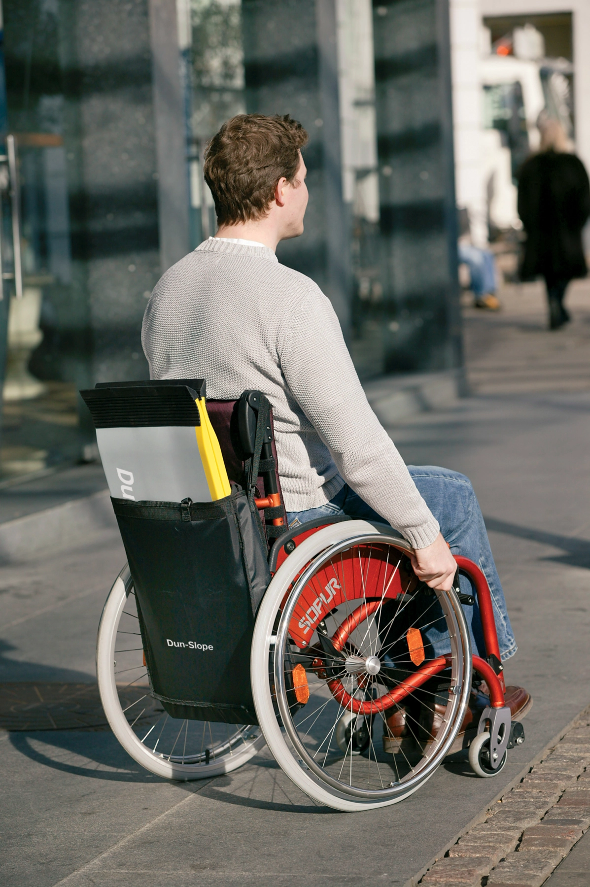 Slimme rolstoeltas die het gemakkelijk maakt om de oprijplaat mee te nemen
