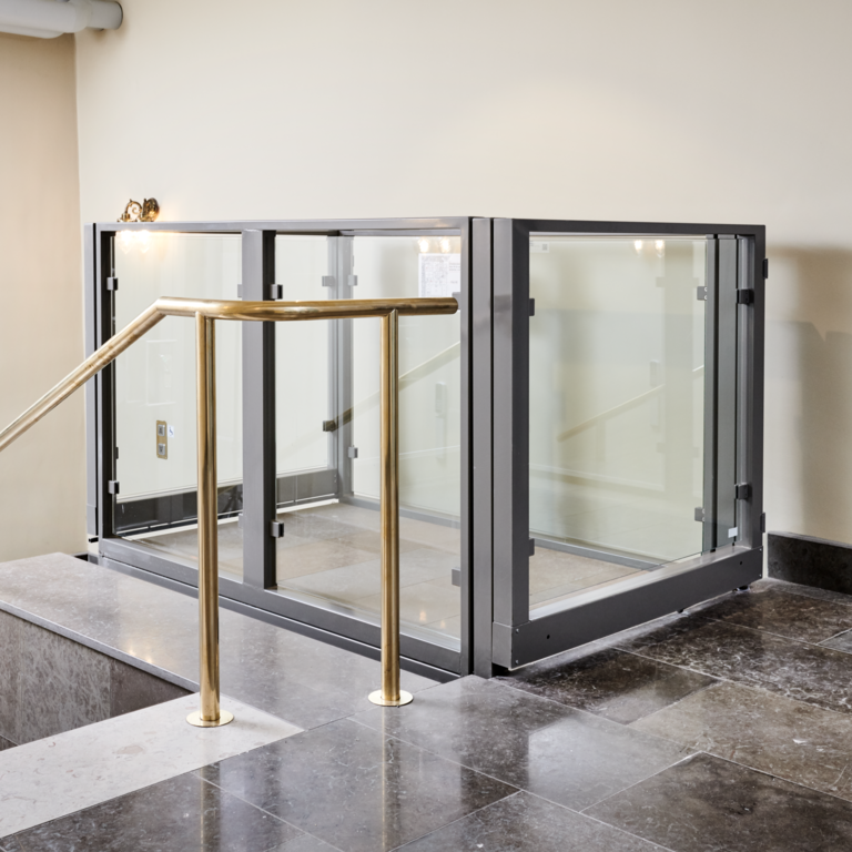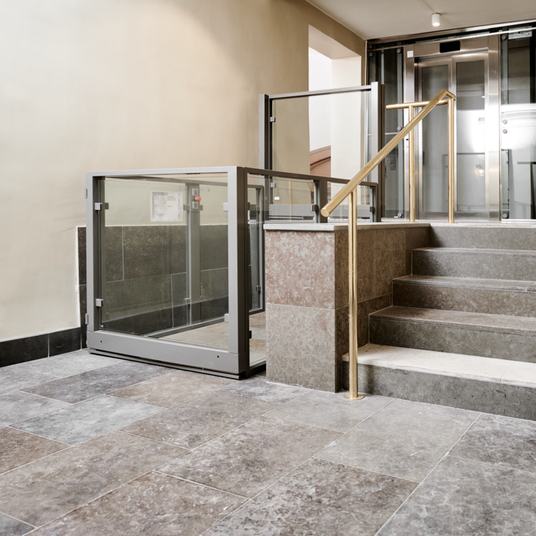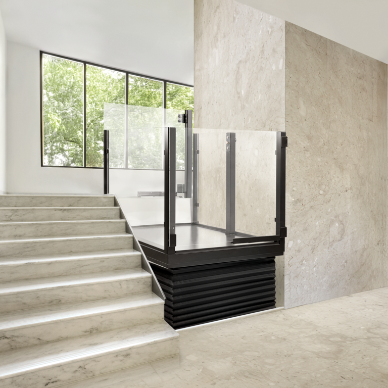 Stepless lyftplattform SLP A kan installeras inomhus eller utomhus och levereras med de specifika dimensioner som strukturen kräver.