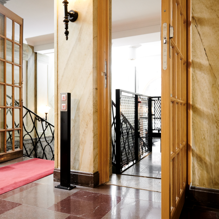Stepless lyftplattform SLP A är en skräddarsydd modell med övre och nedre grindar allt för att anpassa till miljön.