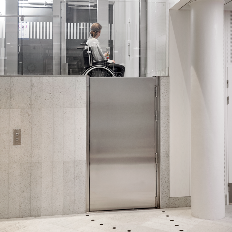 Stepless lyftplattform SLP G kan installeras inomhus eller utomhus och levereras med de specifika dimensioner som strukturen kräver. Lyftplattformen kan skräddarsys så att den passar olika miljöer.
