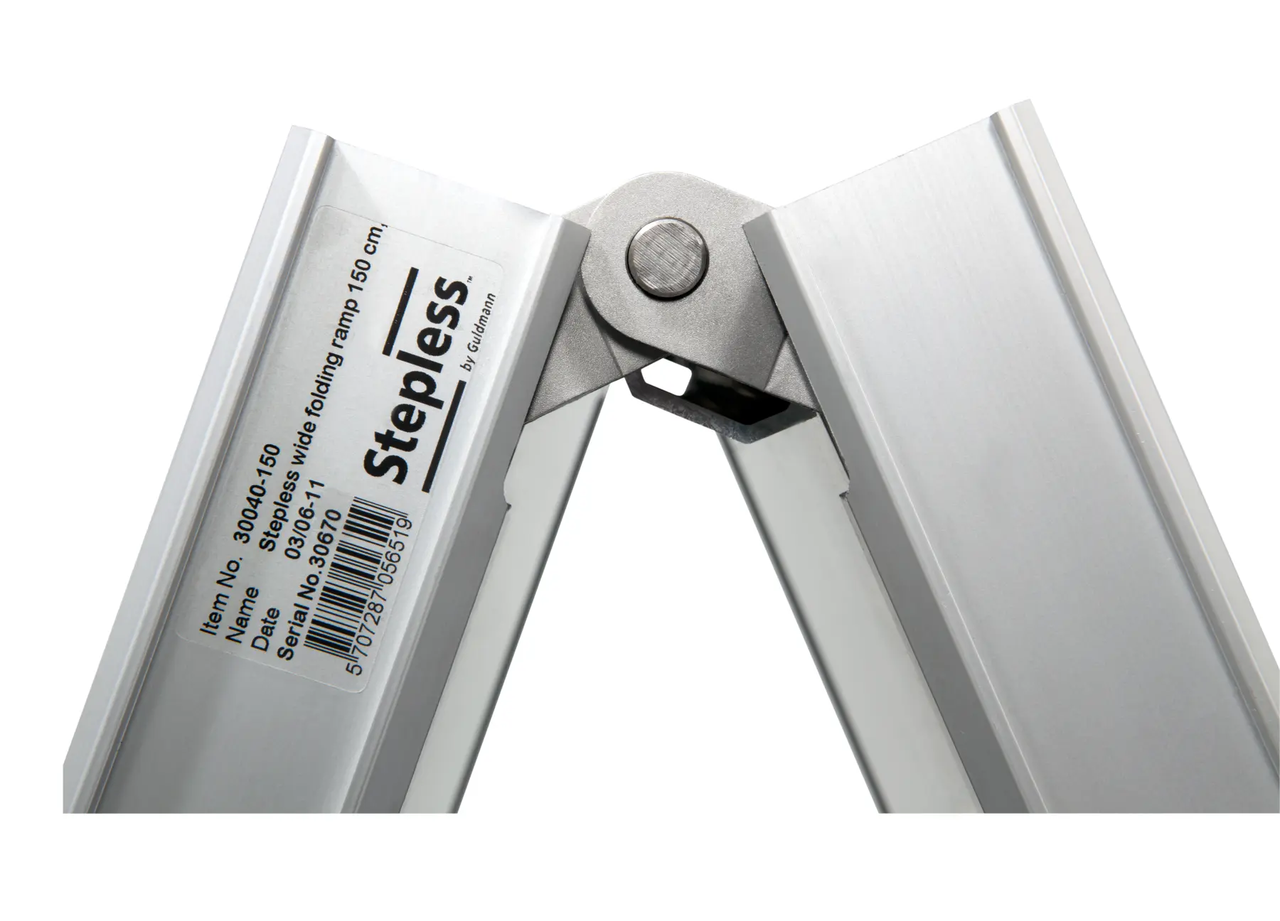 Stepless breda vikbara ramper är idealiska för situationer där rampen används på samma plats. Stepless breda vikbara ramp lämpar sig både för elrullstolar och scootrar eftersom den har en bred köryta utan upphöjda kanter som är i vägen för hjulen. Den här rampmodellen kan också vikas ihop till halva storleken, vilket betyder att den upp mindre utrymme när den inte används.
