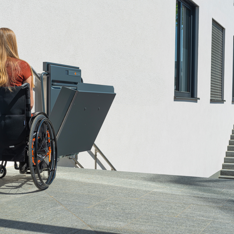 Trapplyften har en kapacitet på upp till 300 kg. Plattformen har som standard storleken 1 000 x 800 mm.