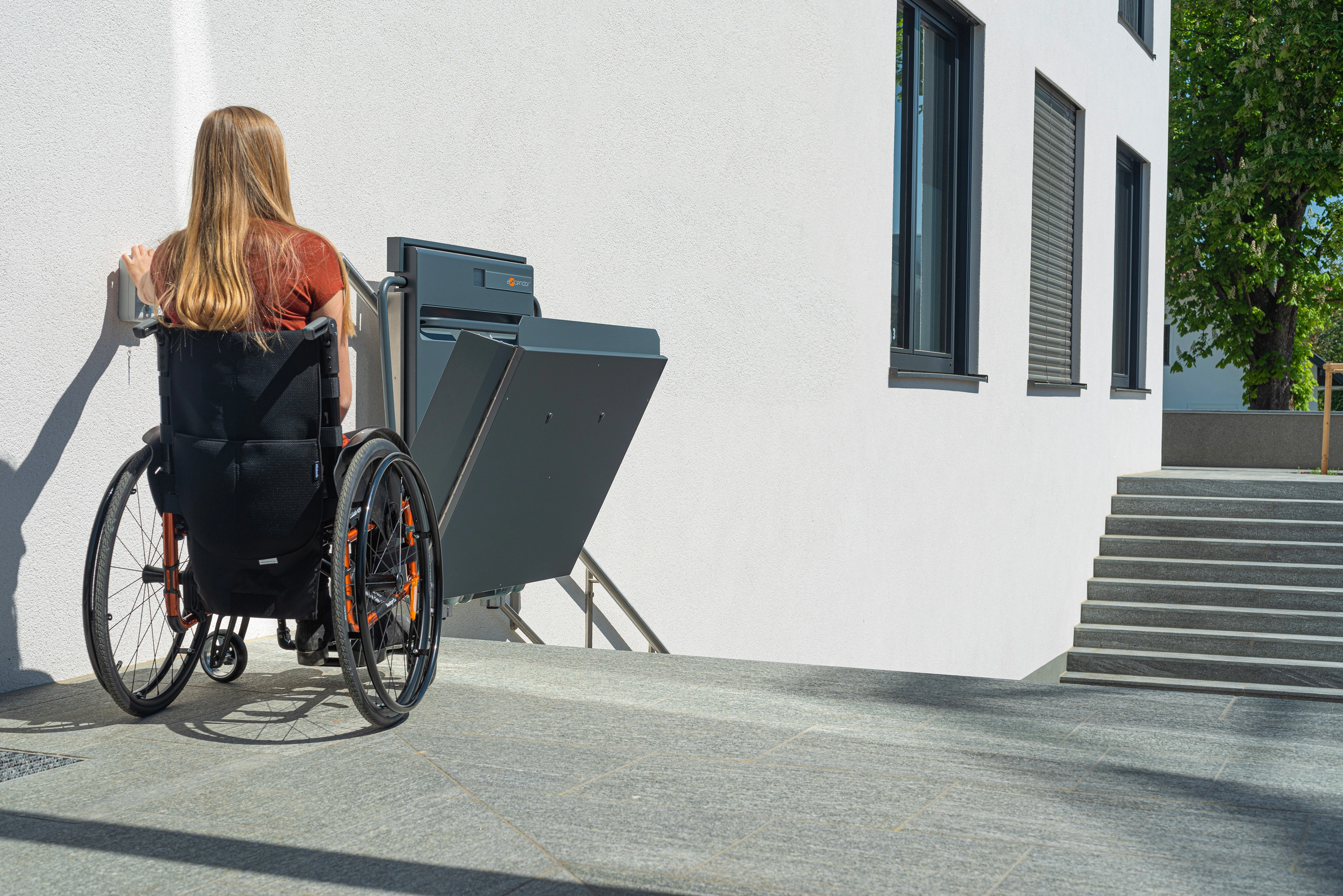 Trapplyften har en kapacitet på upp till 300 kg. Plattformen har som standard storleken 1 000 x 800 mm.